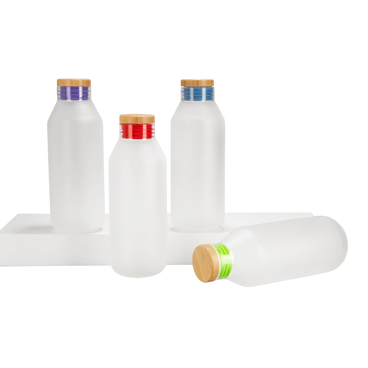 Cilindro de vidrio con terminado frosty. Tapa de bambú y…