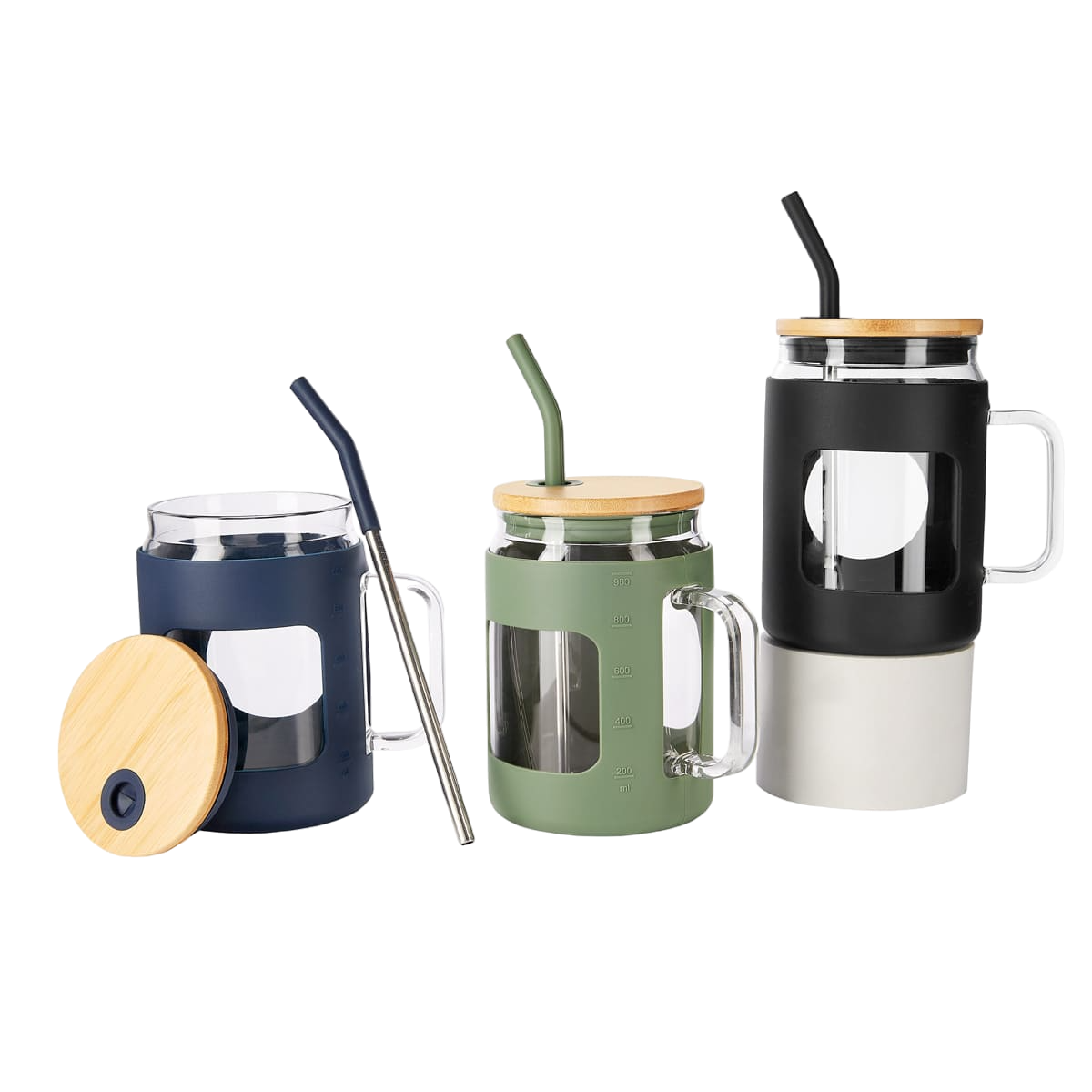 Cilindro de vidrio con manga de silicón removible, tapa de…