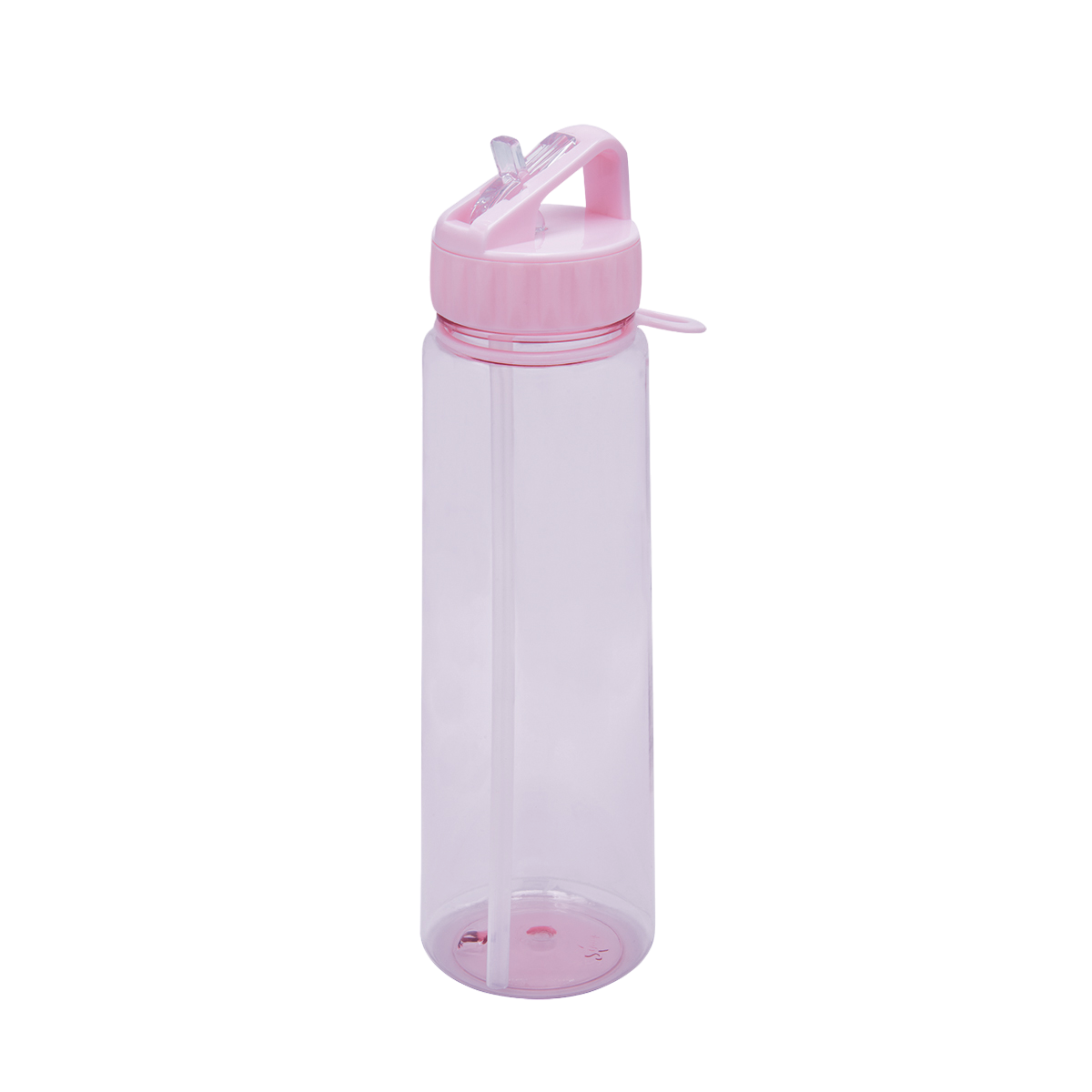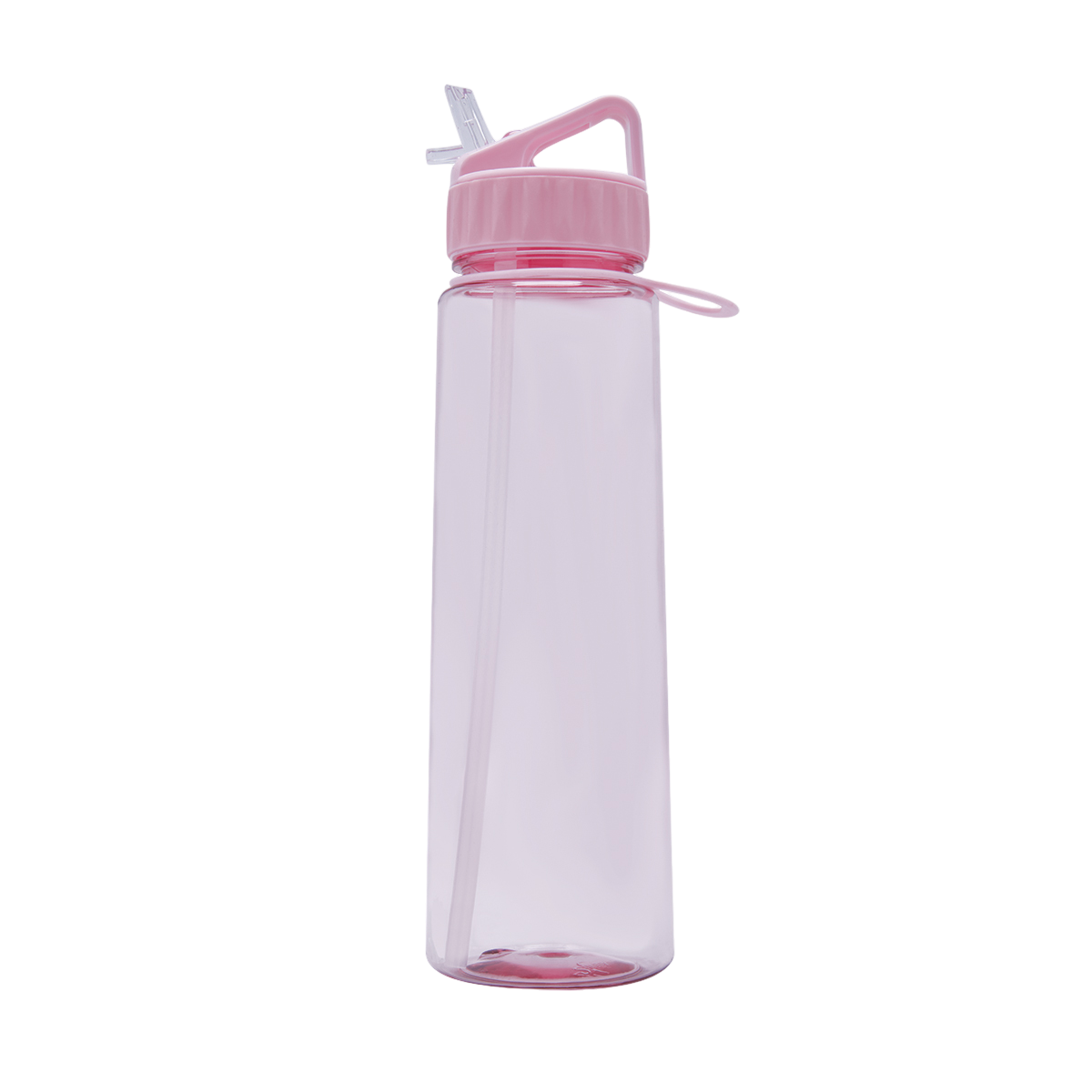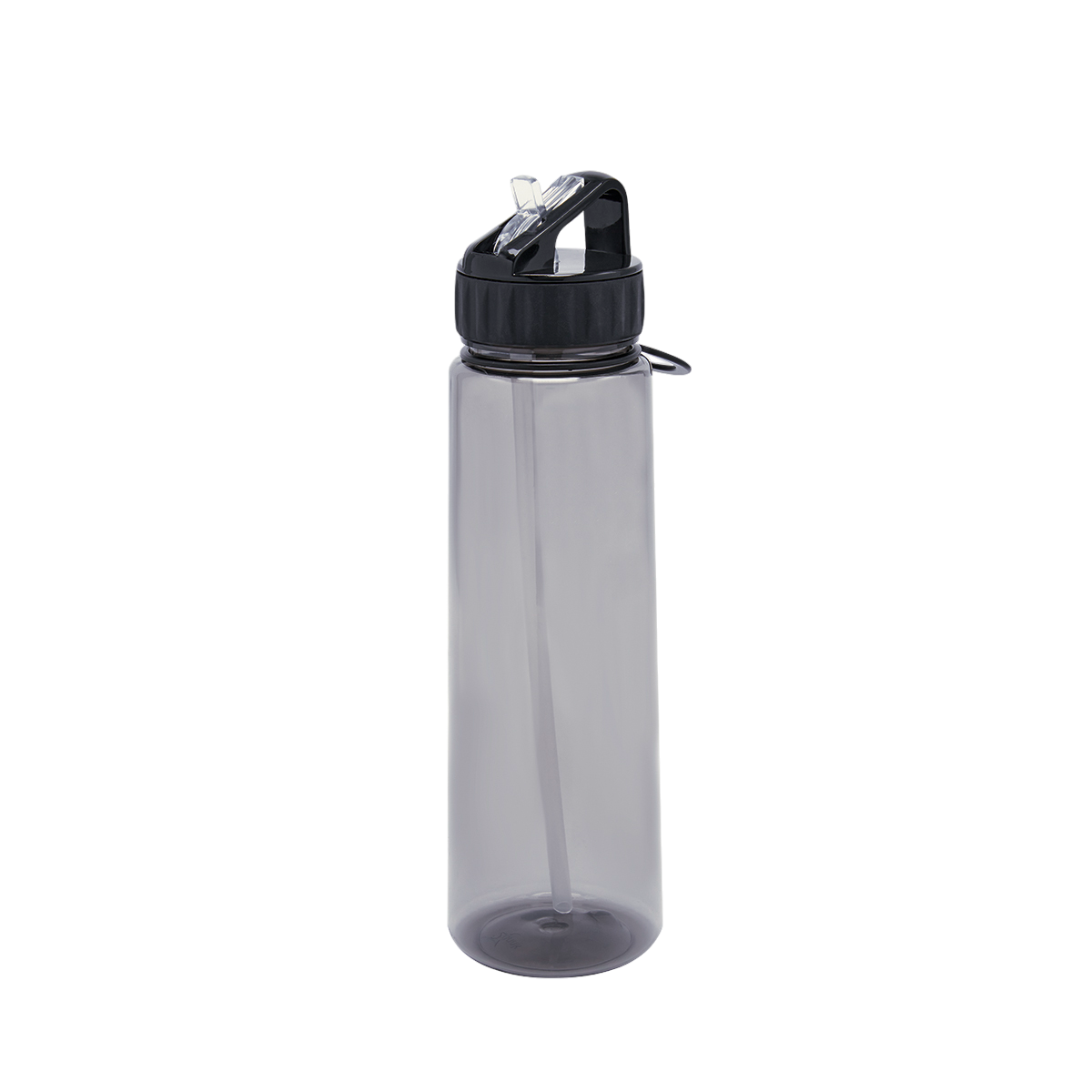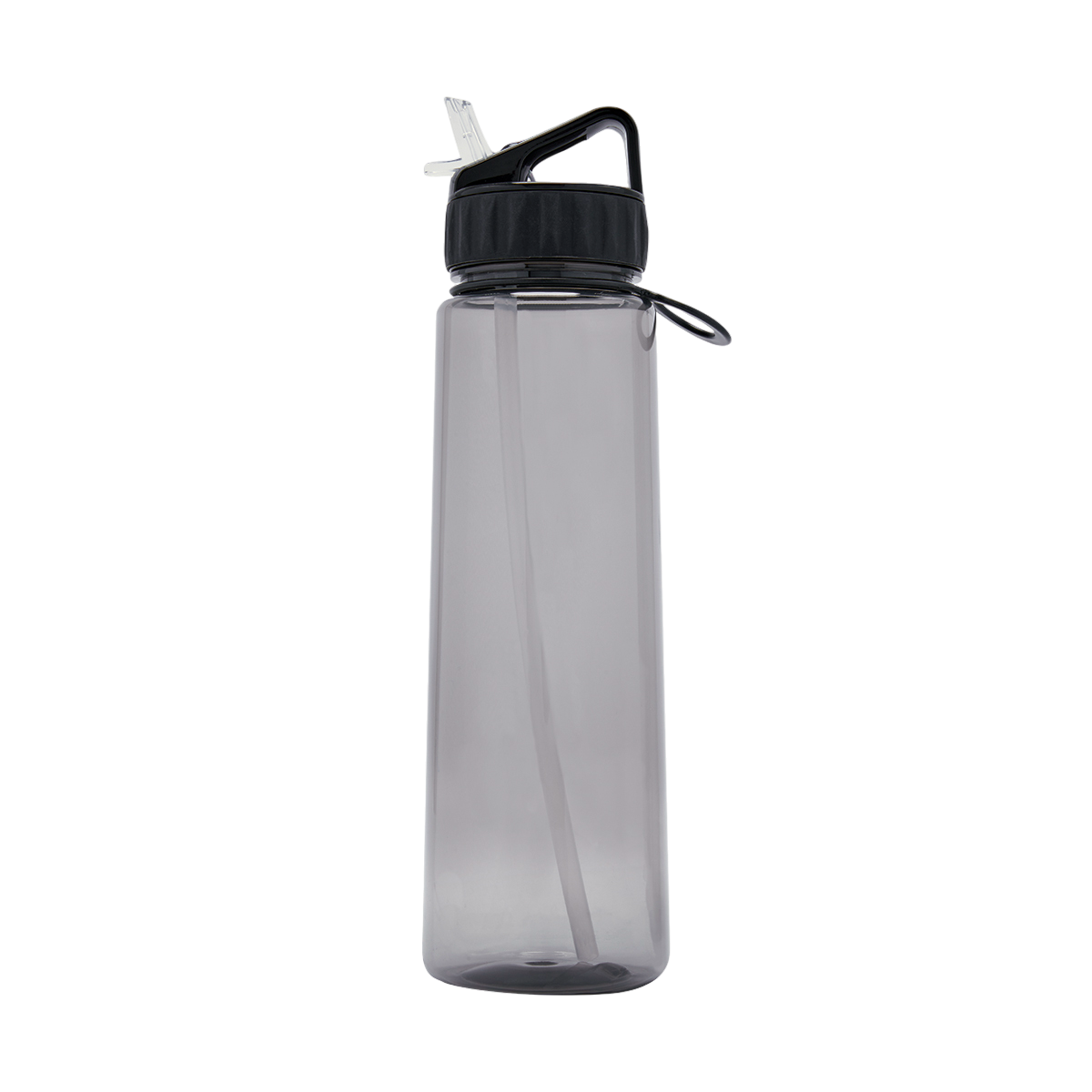 Tapa con cierre de rosca, asa y boquilla plegable para beber. Incluye popote y aro de silicón para colgar toalla, llaves etc.