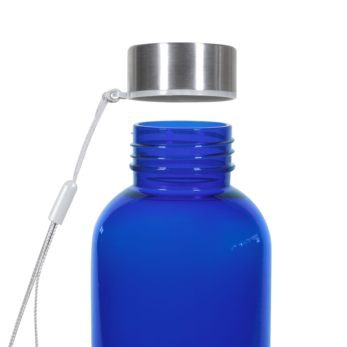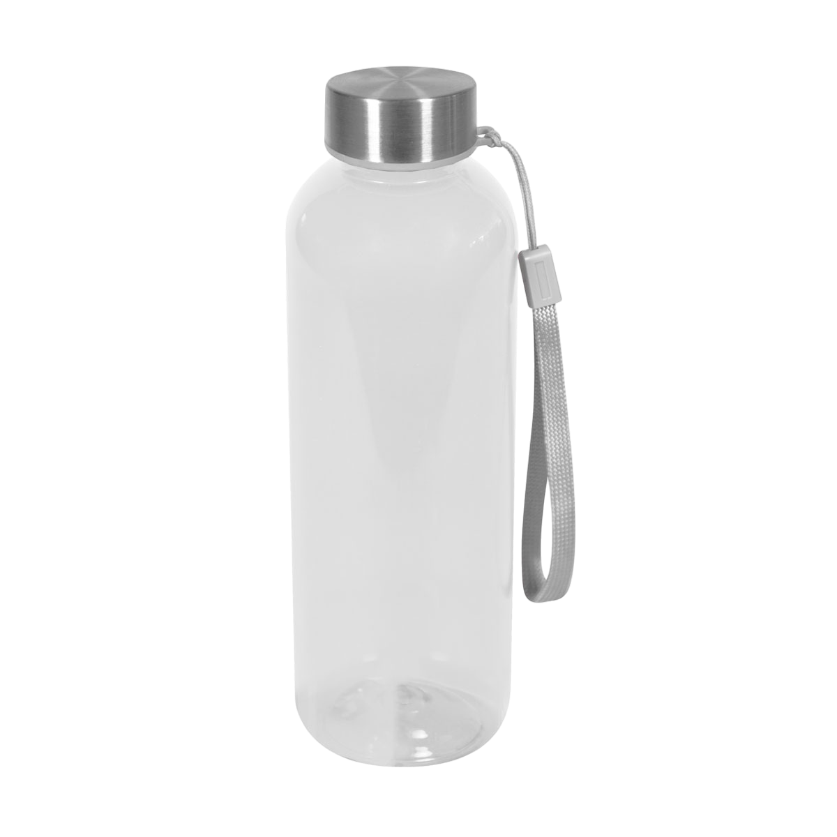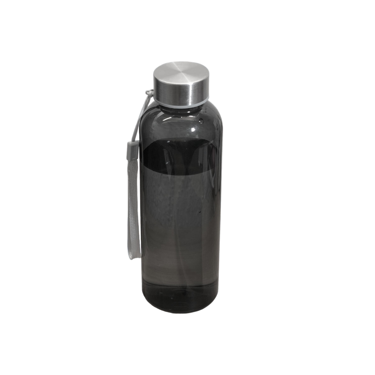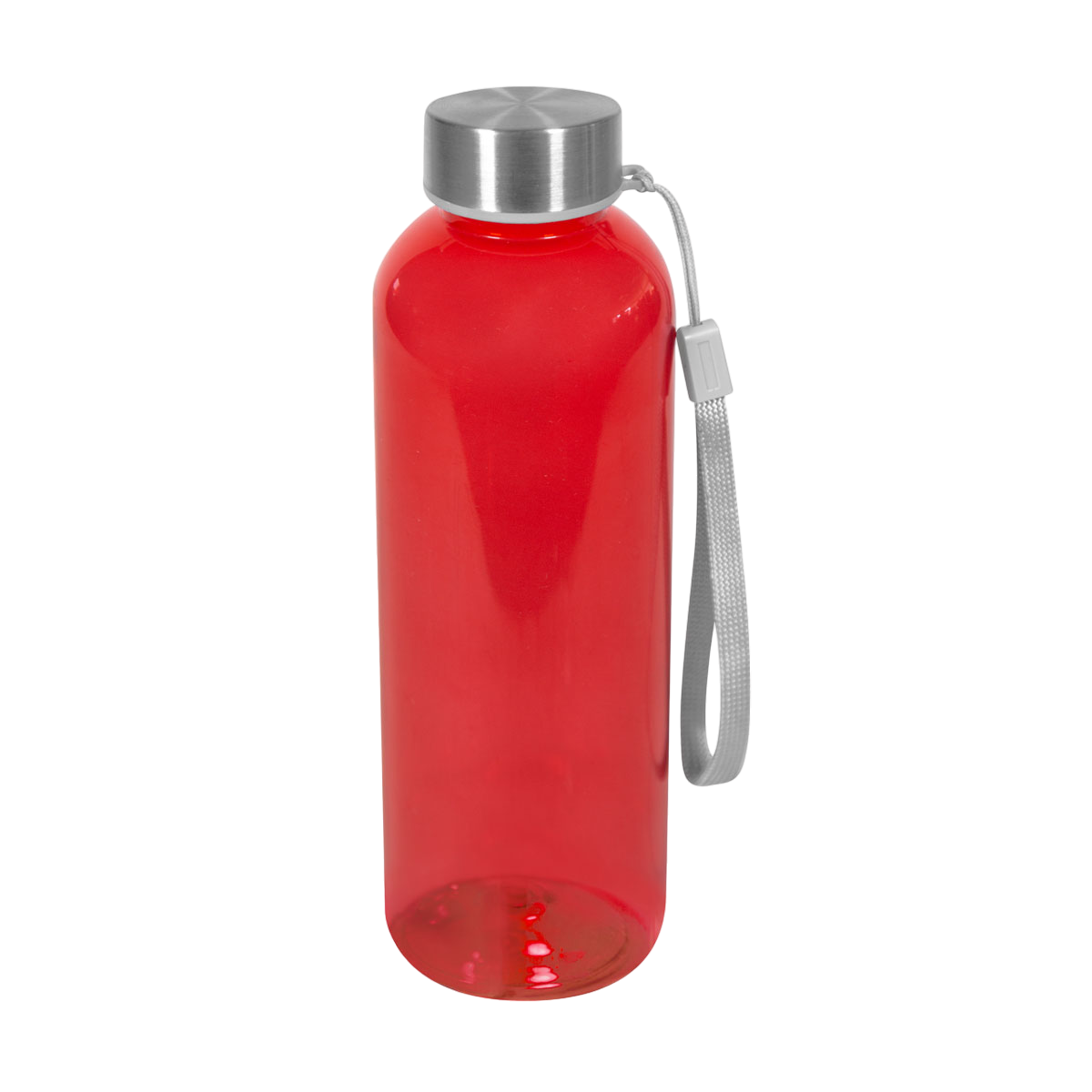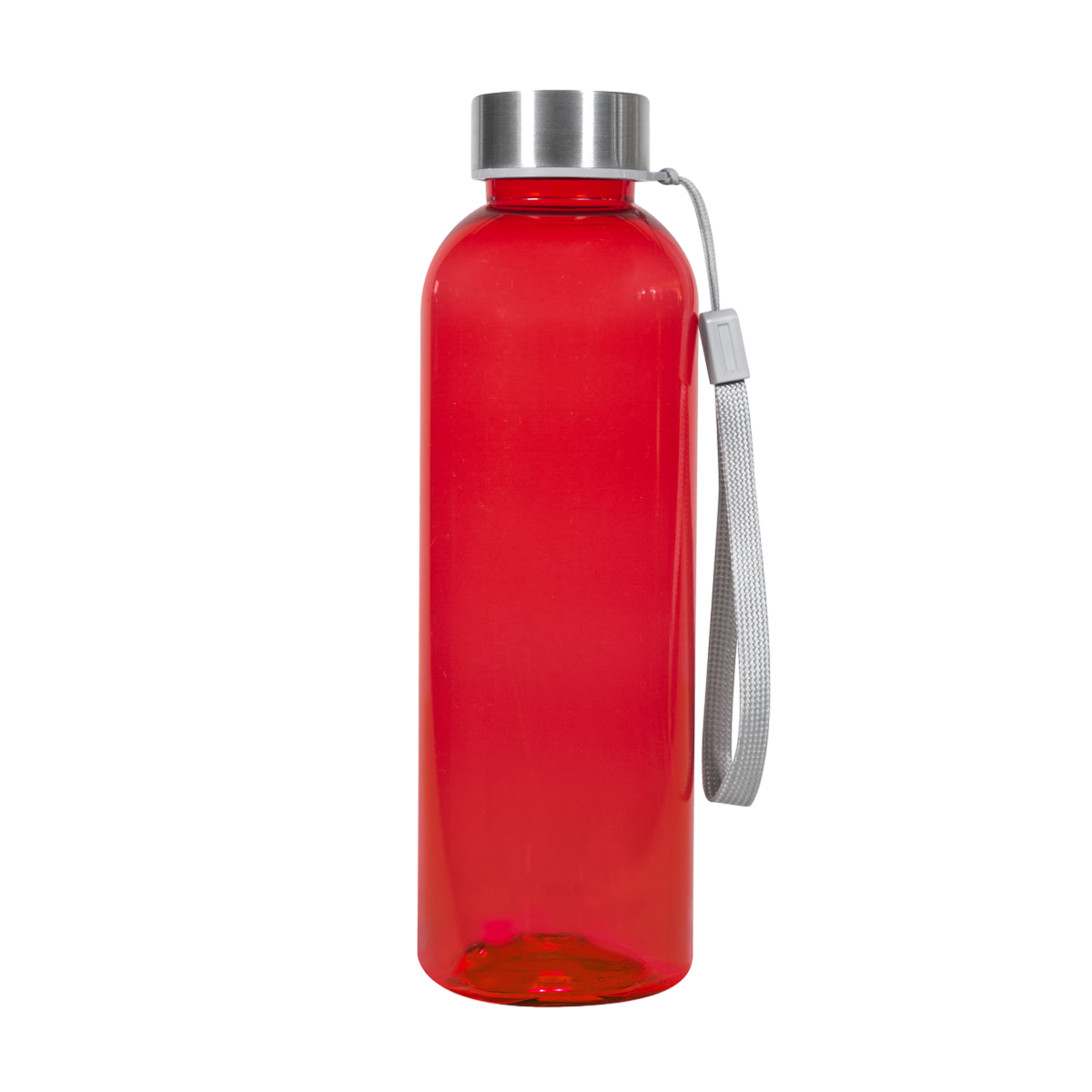 Pared sencilla de plástico. Tapa metálica con sistema de rosca, incluye un asa de tela para transportarla fácilmente.