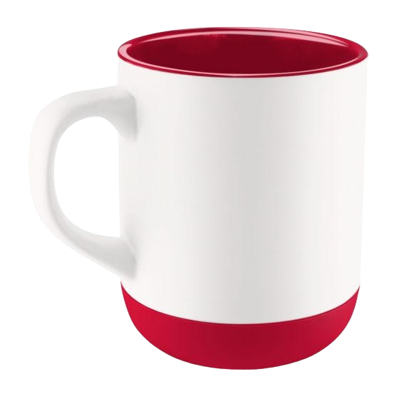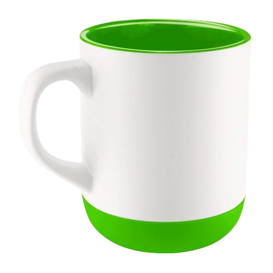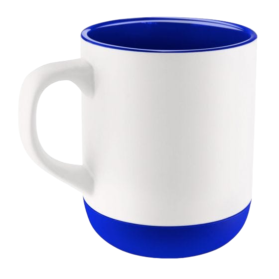 Taza de cerámica con base de silicón. Exterior blanco e interior de color.
