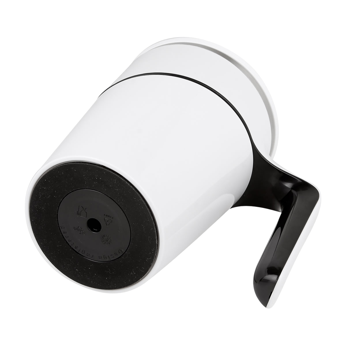Doble pared. Pared interna de acero inoxidable y externa de plástico. Incluye tapa y chupón de succión que permite la fijación a la superficie evitando el derrame por accidente.