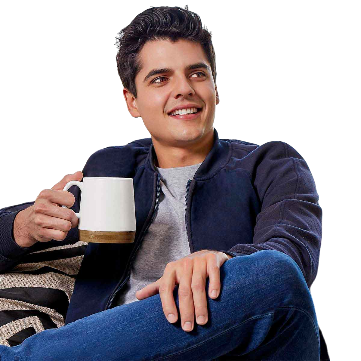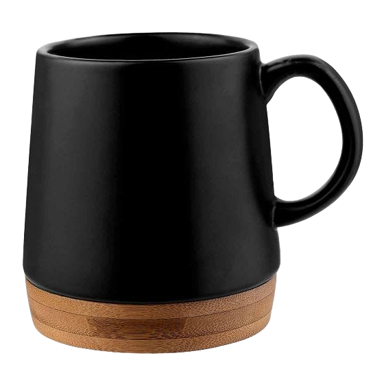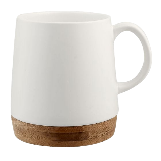 Taza de cerámica con base de bambú. Terminado mate.