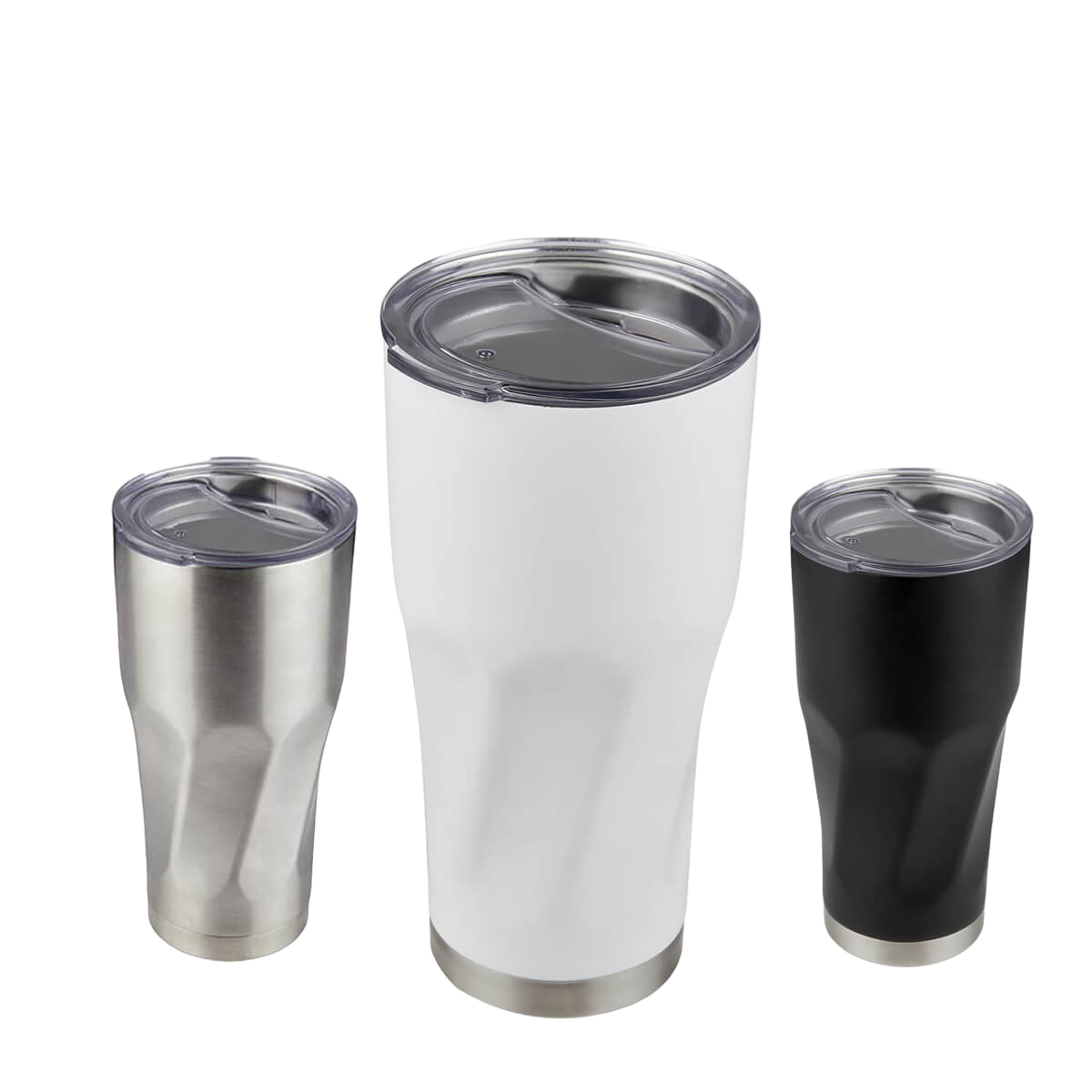 Doble pared. Cerrado al vacío. Pared interna y externa acero inoxidable. Tapa de plástico con ranura. Mantiene