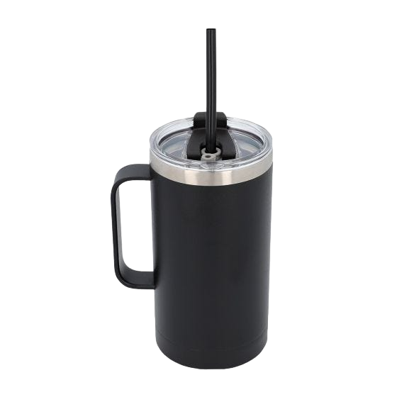 Doble pared. Cerrado al vacío. Pared interna y externa acero inoxidable. Incluye popote. Incluye tapa de plástico con cierre a presión y ranura especial para popote. Recubrimiento en terminado tipo rugoso. Mantiene temperatura caliente 6 hrs y temperatura fría 8 hrs aproximadamente. Incluye caja individual.