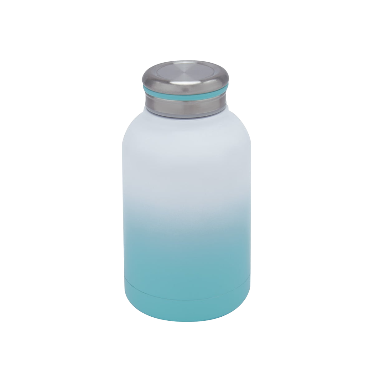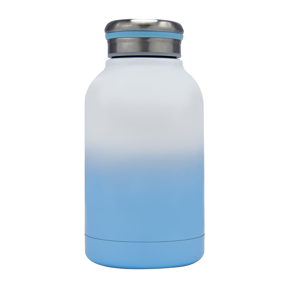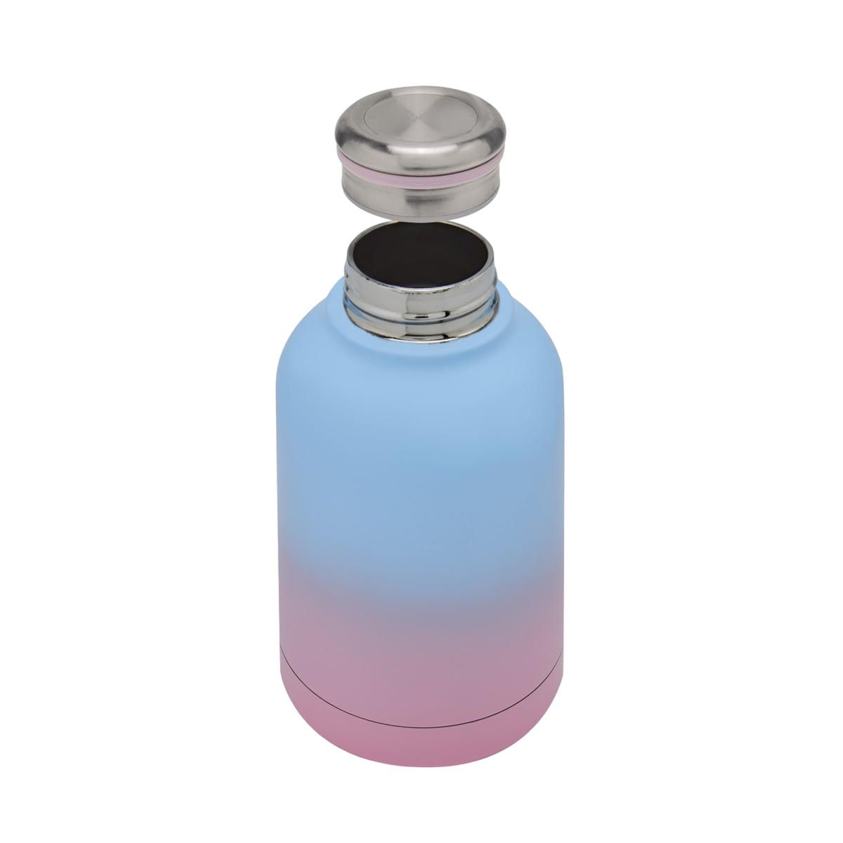 Mini termo color degradado. Doble pared. Cerrado al vacío. Pared interna y externa de acero inoxidable. Mantiene temperatura caliente 6 hrs y temperatura fría 8 hrs aproximadamente. Tapa con sistema de rosca. Termo pintado a mano por lo que el color y degradado pueden variar. Incluye caja individual.